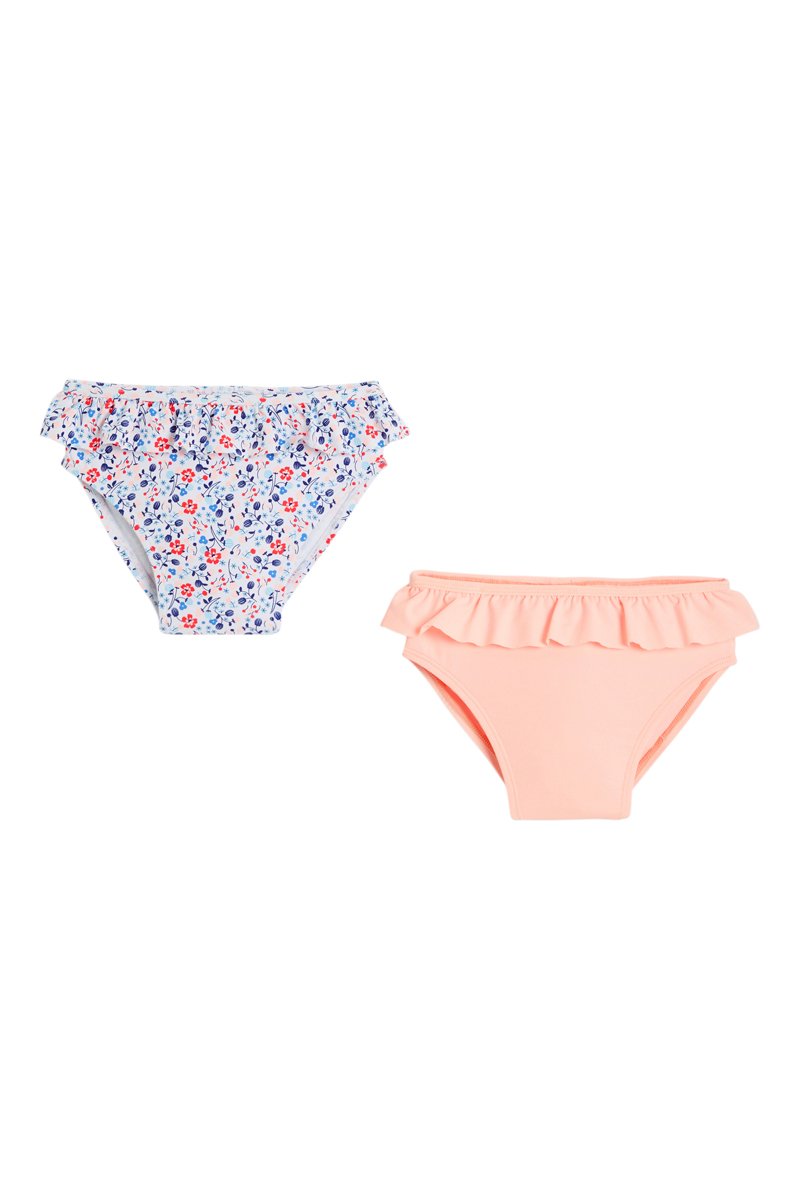 2 partes de baixo de biquíni 1 das quais com estampado de flores.