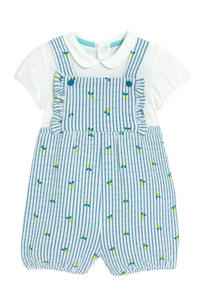 Body e jardineiras - Branco e azul-pato