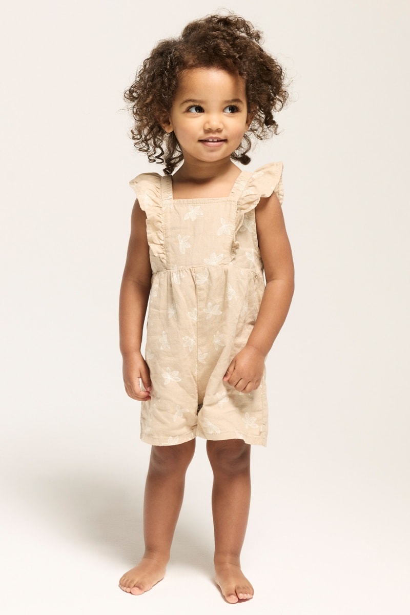 Jardineiras-calção em linho sem mangas - Bege - Obaibi