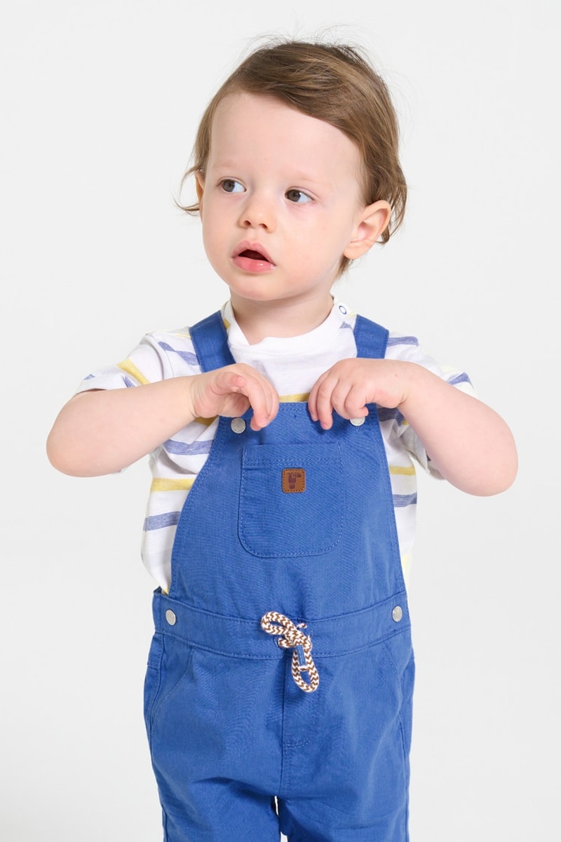 Jardineiras-calção e t-shirt - Azul e branco - Obaibi