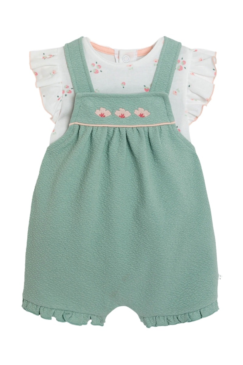 Jardineiras-calção e body - Verde e branco - Obaibi