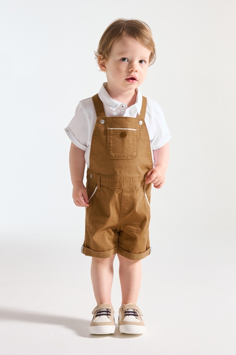 Jardineiras-calção e polo - Castanho e branco - Obaibi
