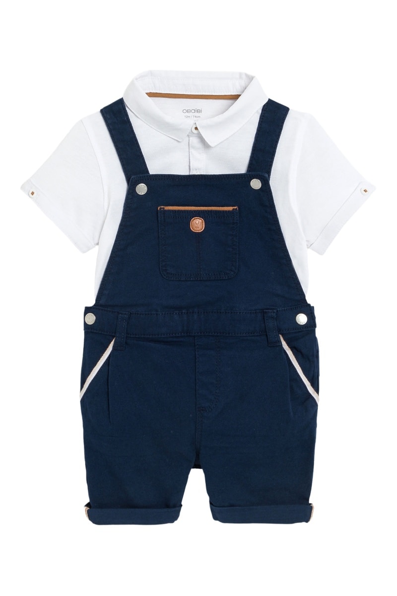 Jardineiras-calção e polo - Azul-marinho e branco - Obaibi