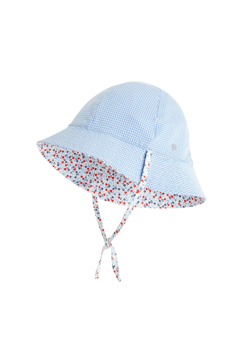 Chapéu à pescador reversível - azul-celeste e vermelho