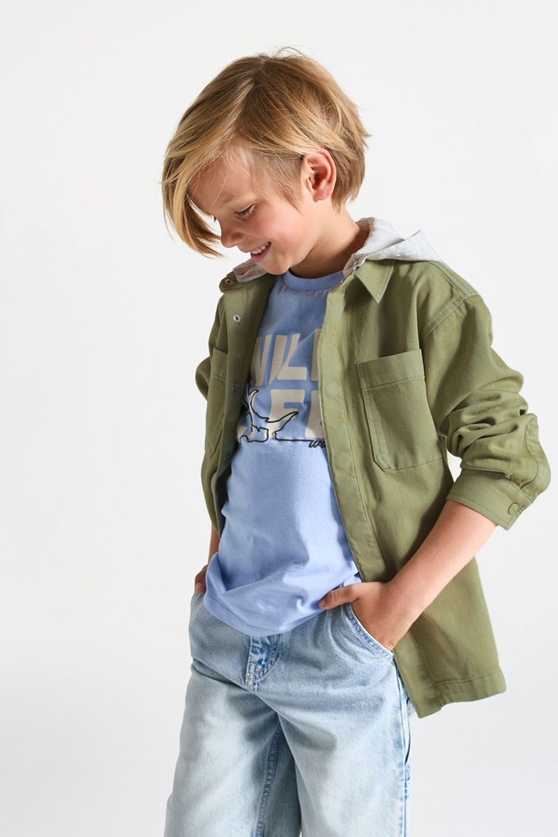 Sobrecamisa com capuz amovível.