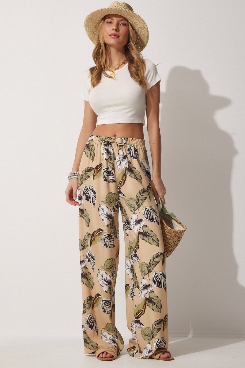 Calças de cintura alta - Bege e verde