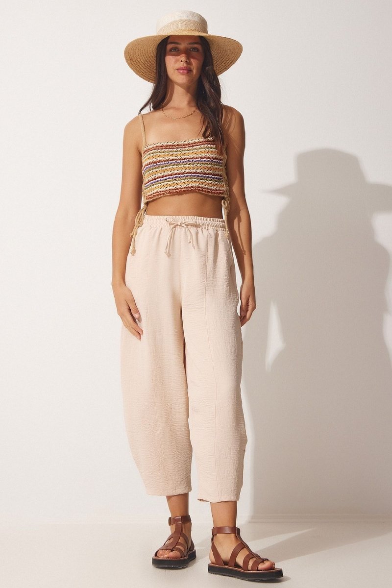 Calças 7/8 de cintura alta - Bege