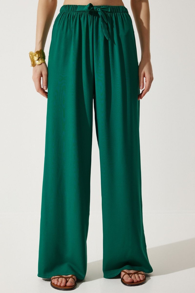 Calças palazzo de cintura alta - Verde-escuro