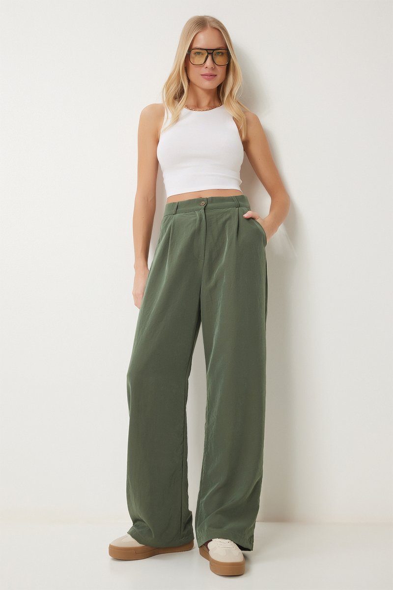 Calças palazzo cintura alta - Caqui