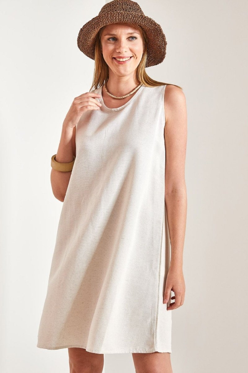 Vestido trapézio em linho - Bege