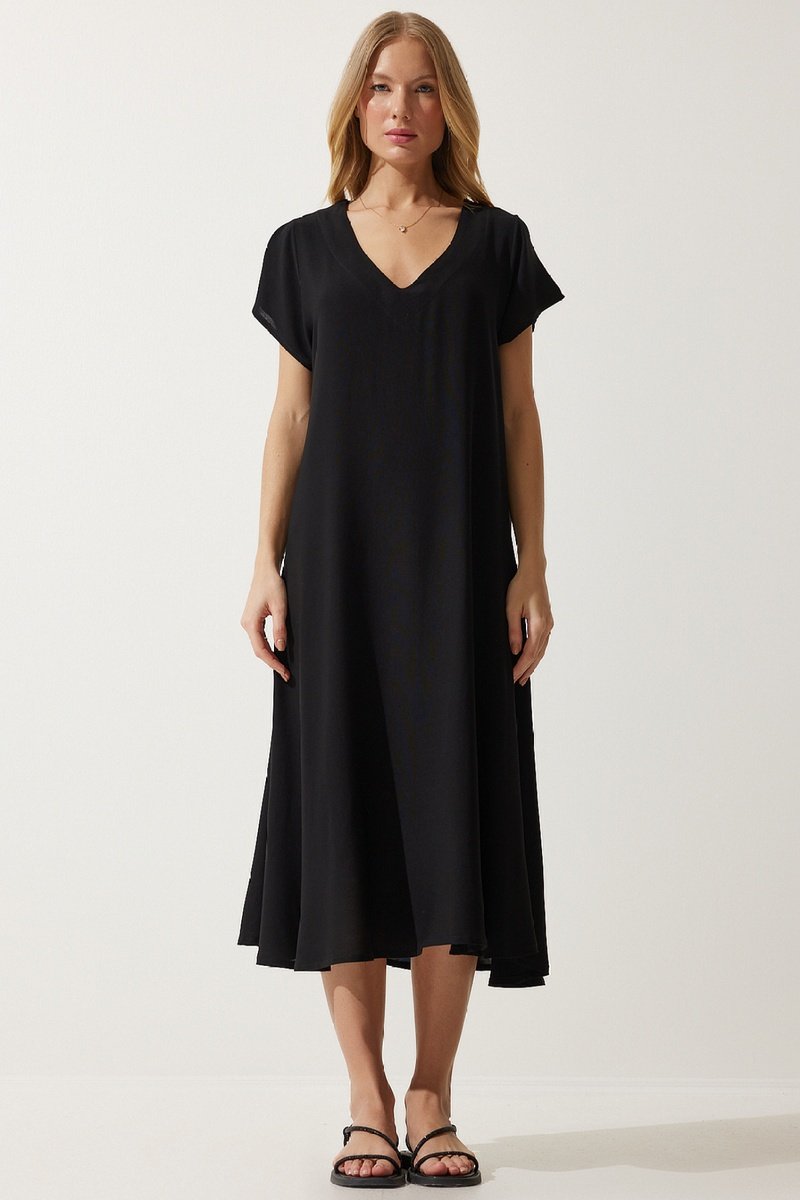 Vestido midi de mangas curtas.