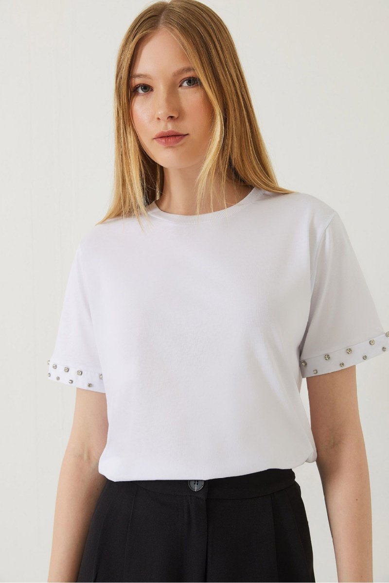 T-shirt de mangas curtas com strass.