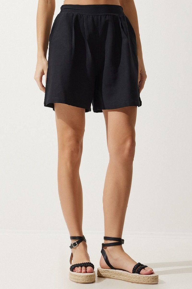 Calções de cintura subida - Preto