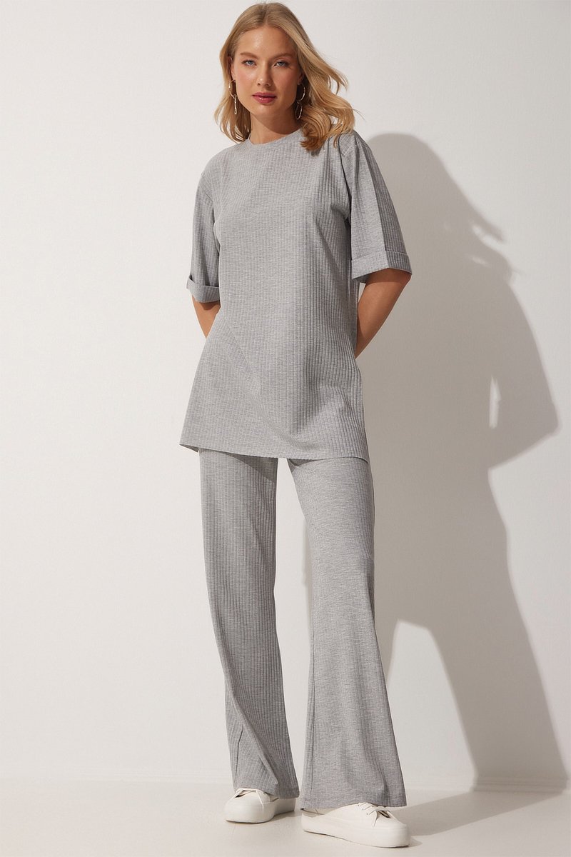 T-shirt e calças wide legs - Cinzento-claro