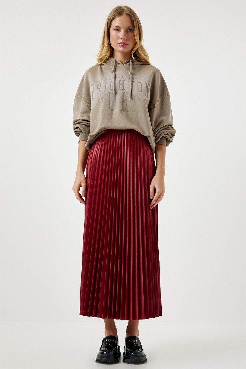 Saia plissada de cintura subida - Vermelho