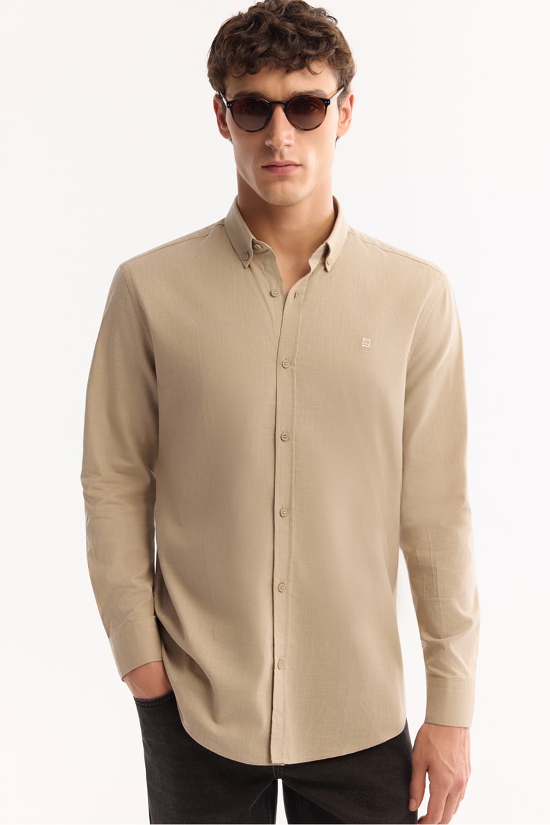 Camisa de mangas compridas abotoáveis.