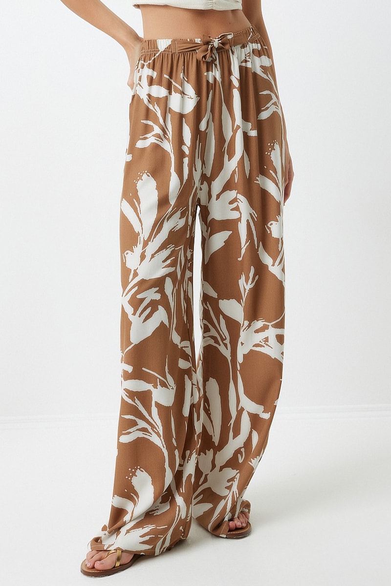 Calças palazzo - Castanho-claro