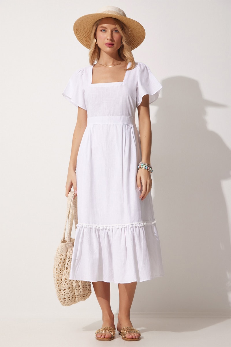 Vestido estilo patinadora em linho - Branco