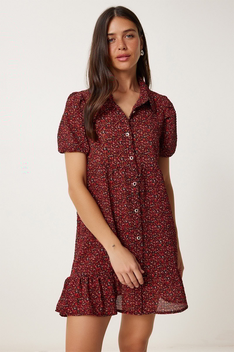 Vestido-camisa - Bordô