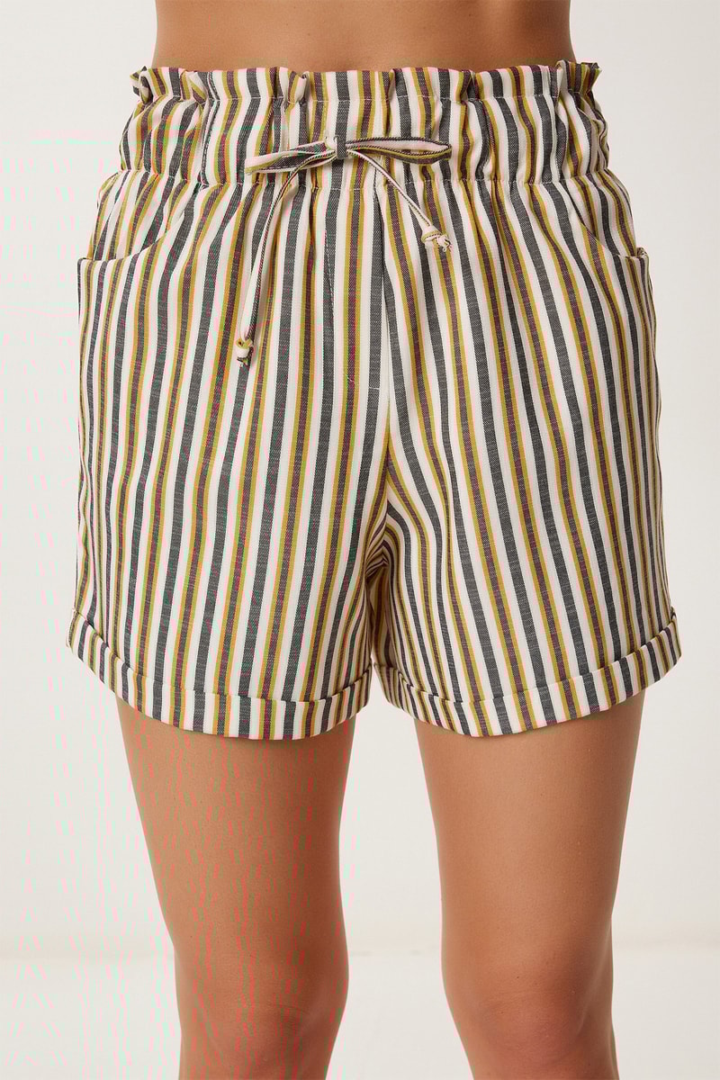 Calções de cintura subida - Mostarda