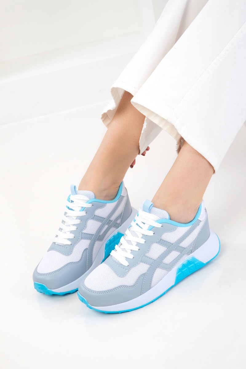 Cor: cinzento-claro, branco e turquesa