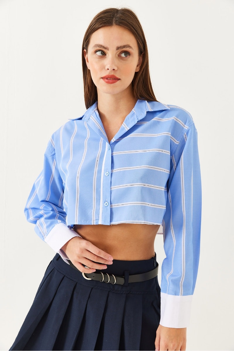 Blusa curta - Azul-celeste