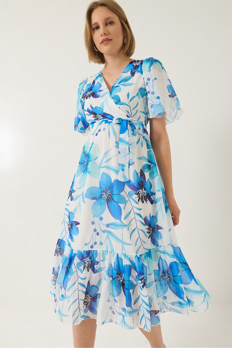 Vestido midi - Azul e branco