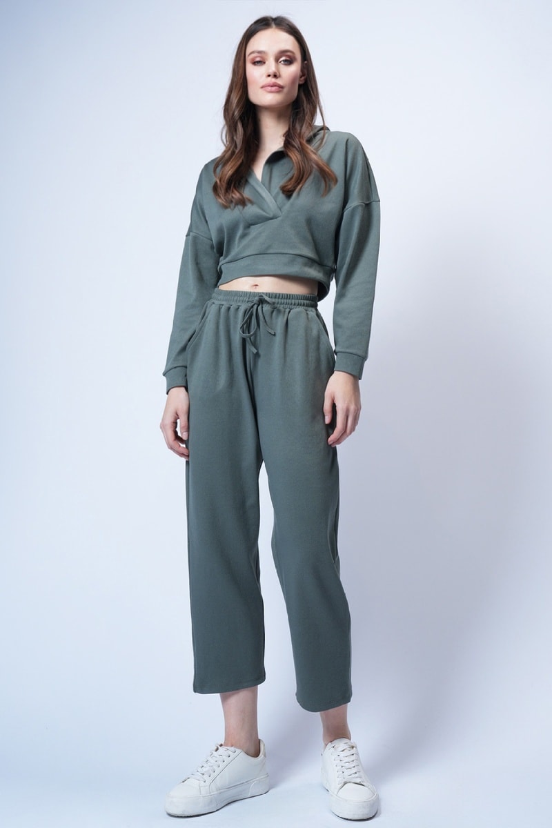 Sweat curta com capuz e calças de cintura subida - Verde-escuro