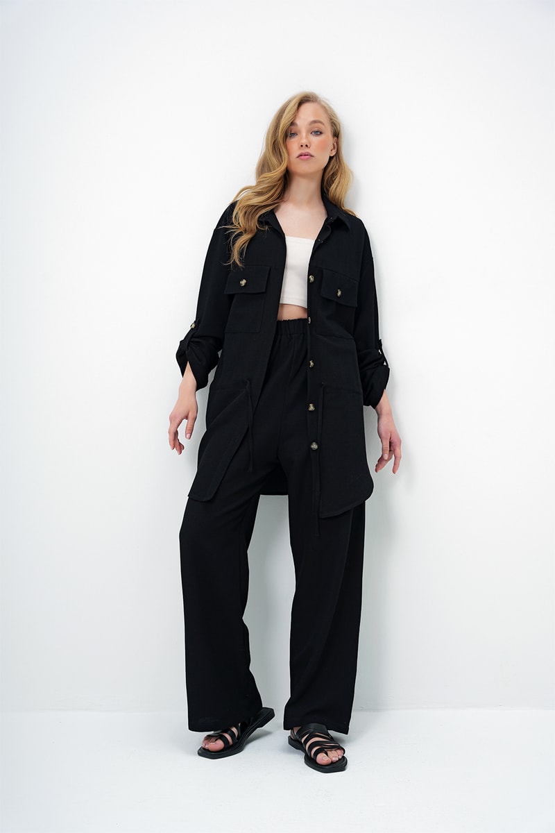 - Casaco com mangas compridas enroláveis com presilha abotoada