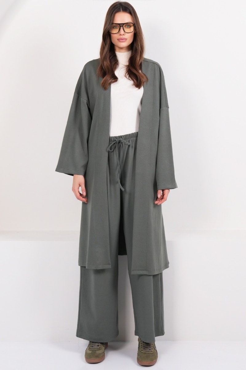Quimono e calças palazzo - Caqui