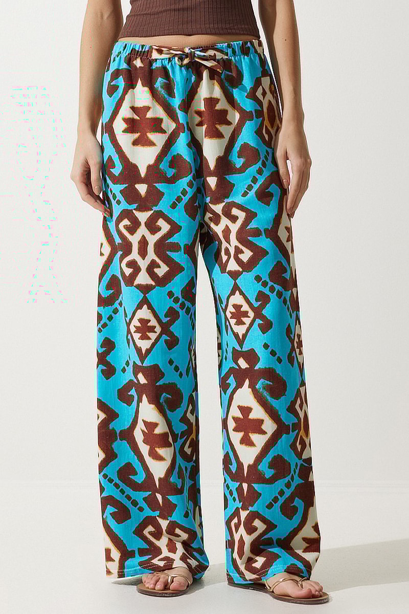 Calças palazzo em linho - Turquesa