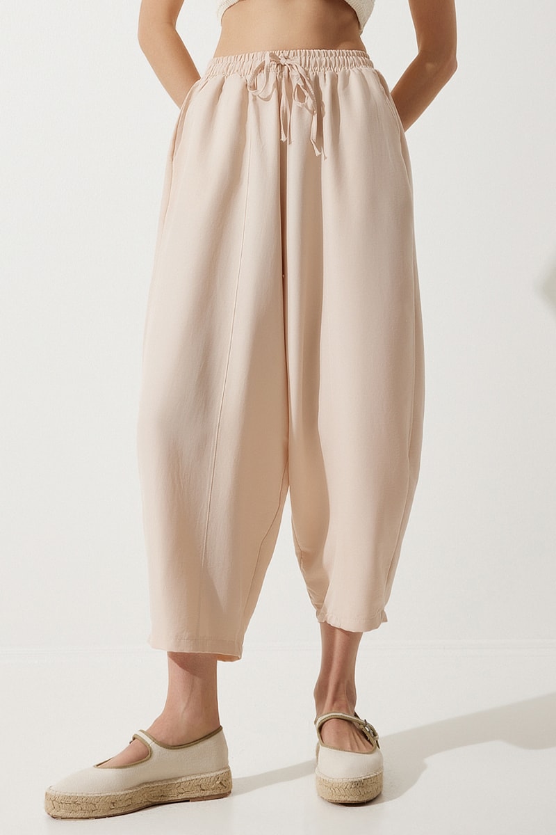 Calças 7/8 cintura subida - Nude