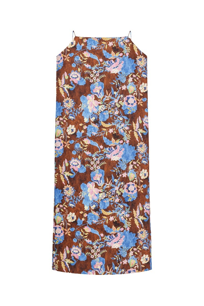 Vestido direito - Castanho-escuro e azul-celeste