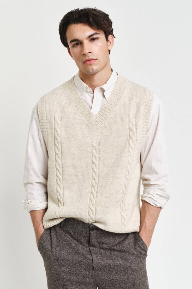 Colete em lã de cordeiro e linho - Bege­mesclado