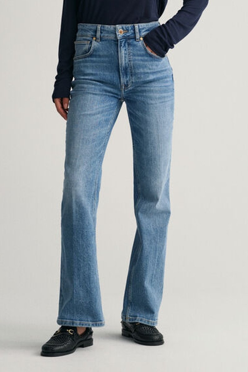 Calças de ganga flare.