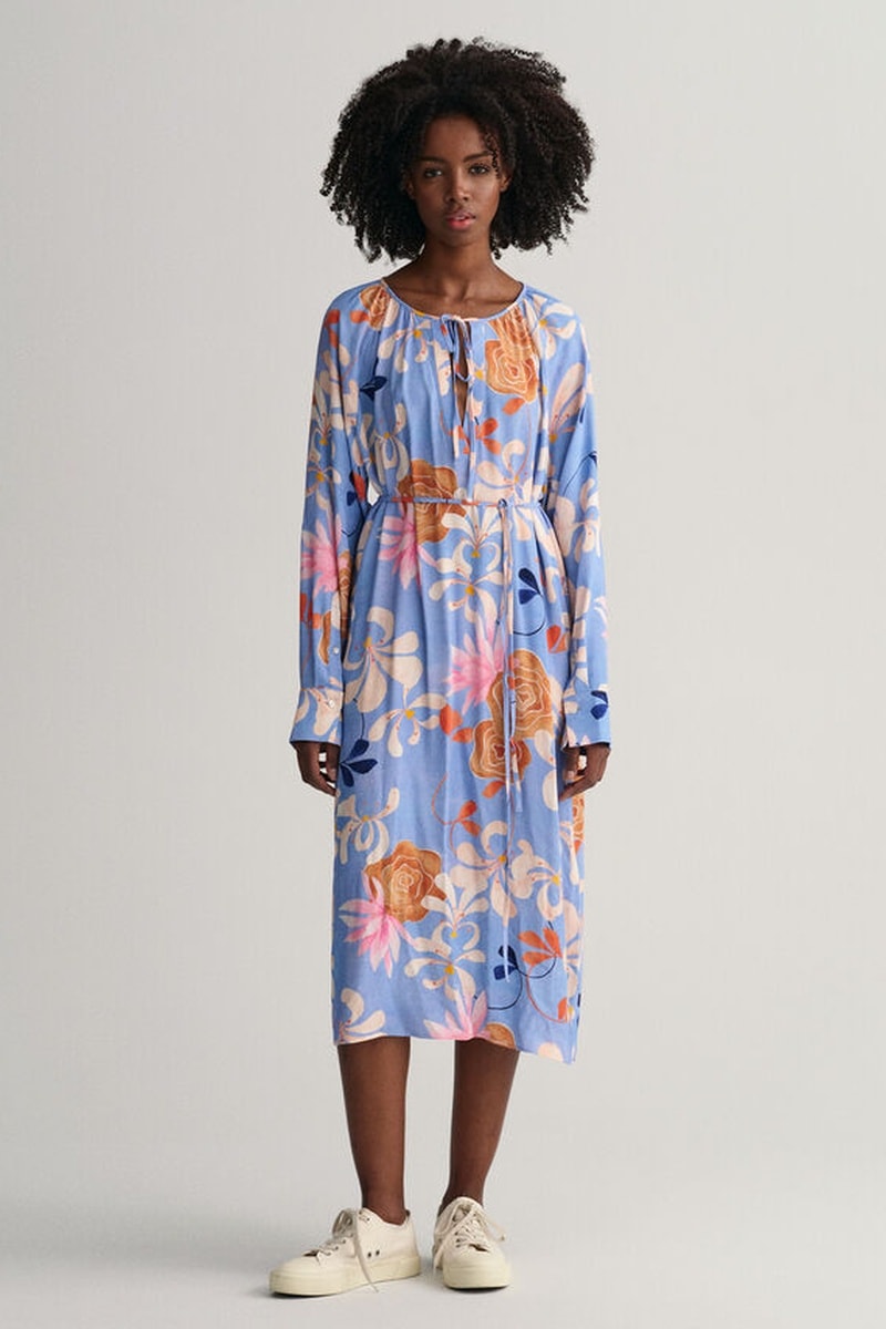 Vestido midi de mangas compridas.