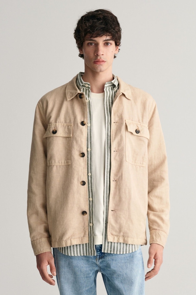 Sobrecamisa relaxed em linho misturado de mangas compridas.