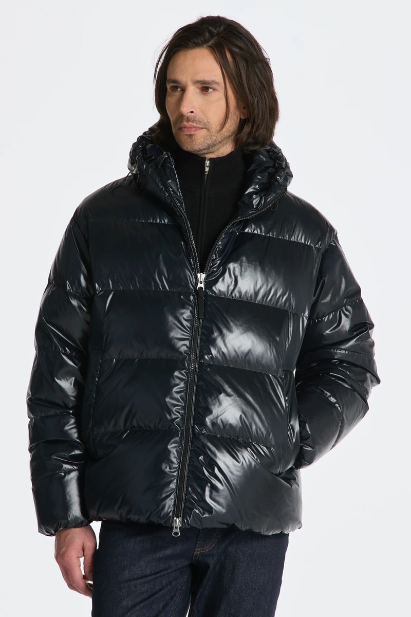 Blusão com capuz com atilhos de ajuste e travões de cordão.