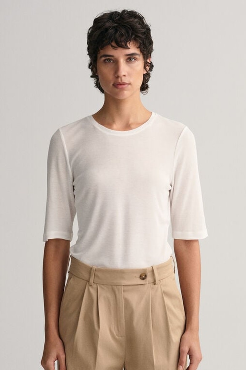 T-shirt slim de mangas semi-compridas.