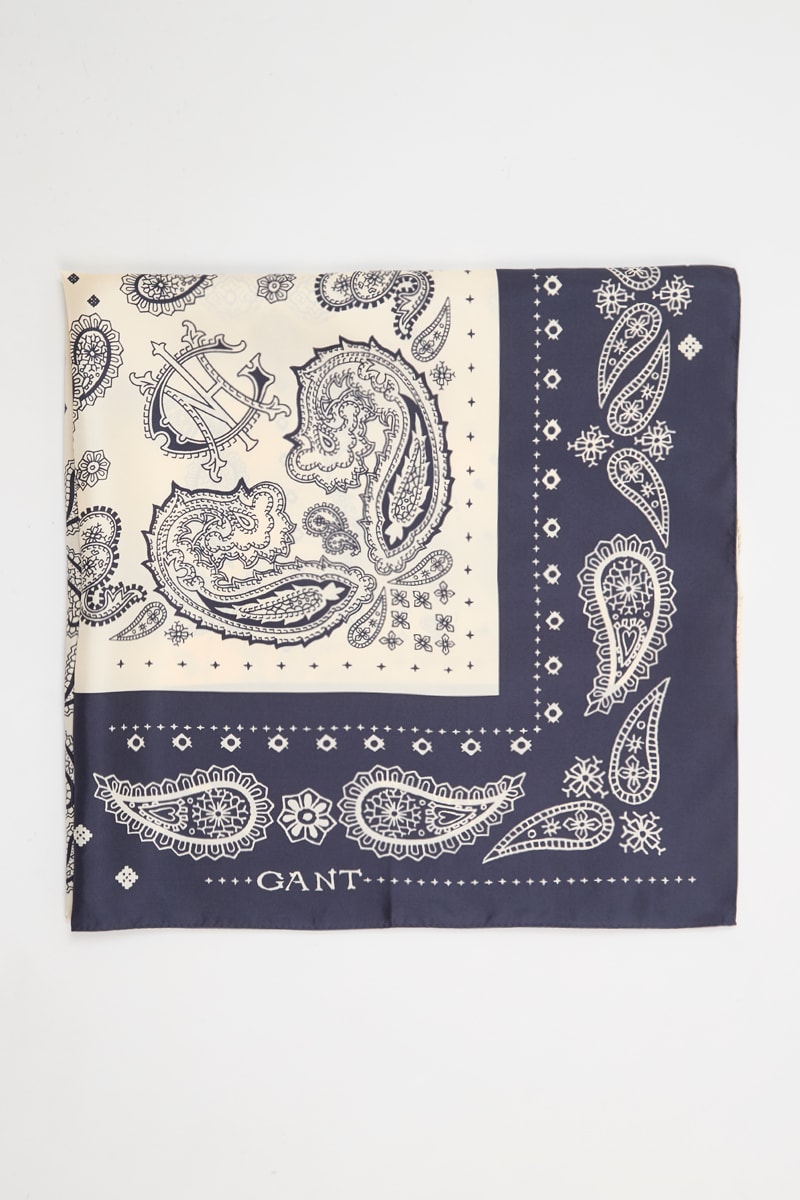 Lenço quadrado em seda.