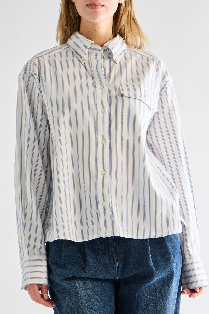Camisa em algodão biológico de mangas compridas abotoáveis.