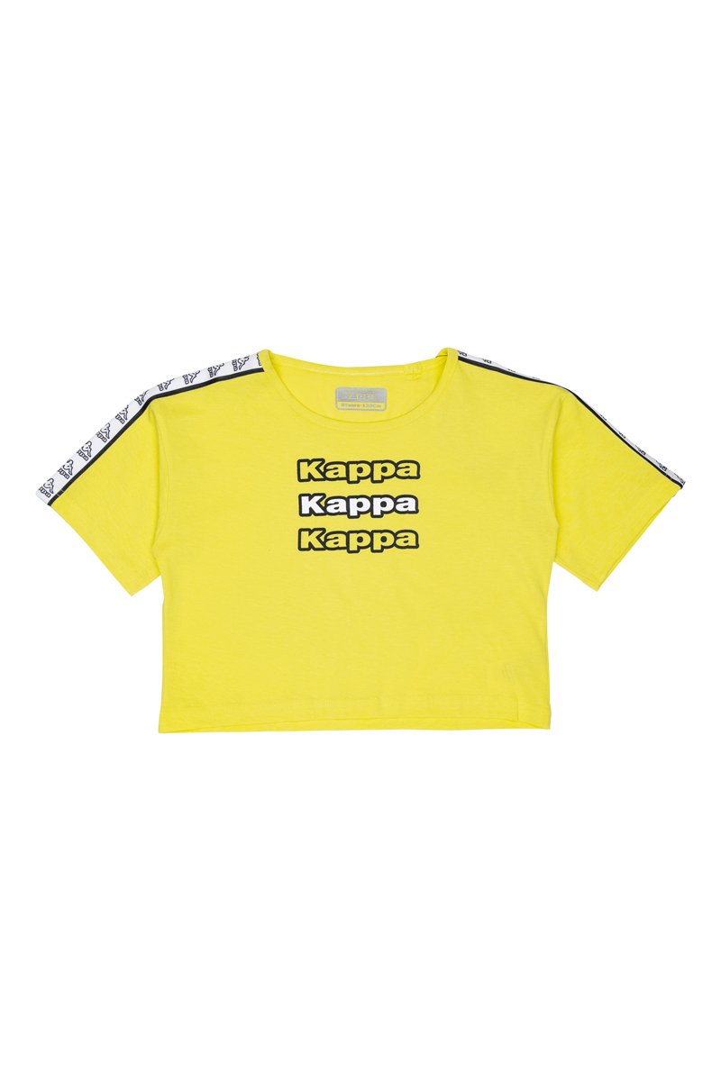 Faixa a contrastar com logótipo nos ombros e nas mangas.