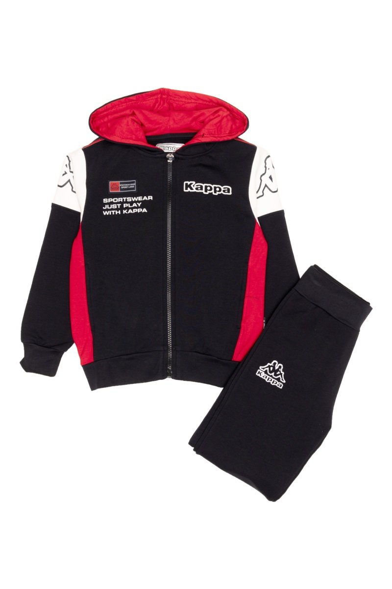 Conjunto sweat com capuz e calças de treino - Preto e vermelho