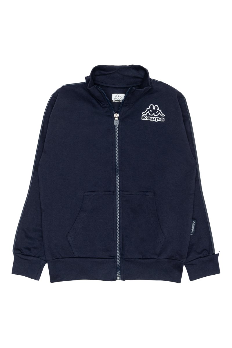 Aplicação a contrastar com logótipo nos ombros e nas mangas.