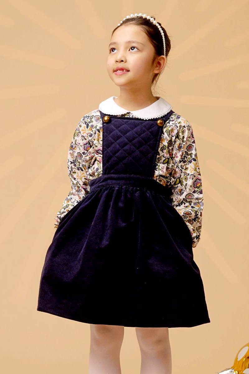 Vestido-jardineiras em veludo - Azul-marinho