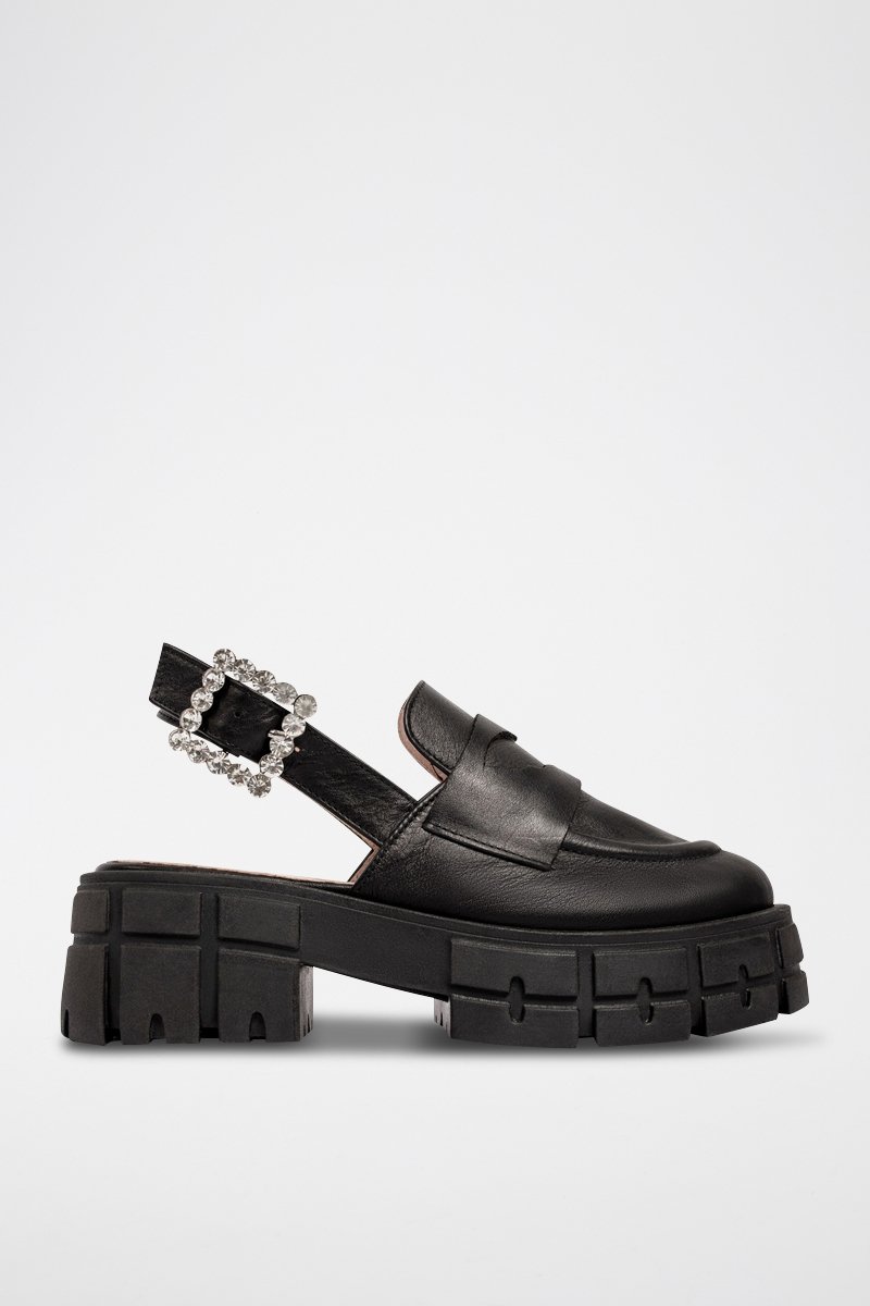 Sandálias com plataforma em couro.