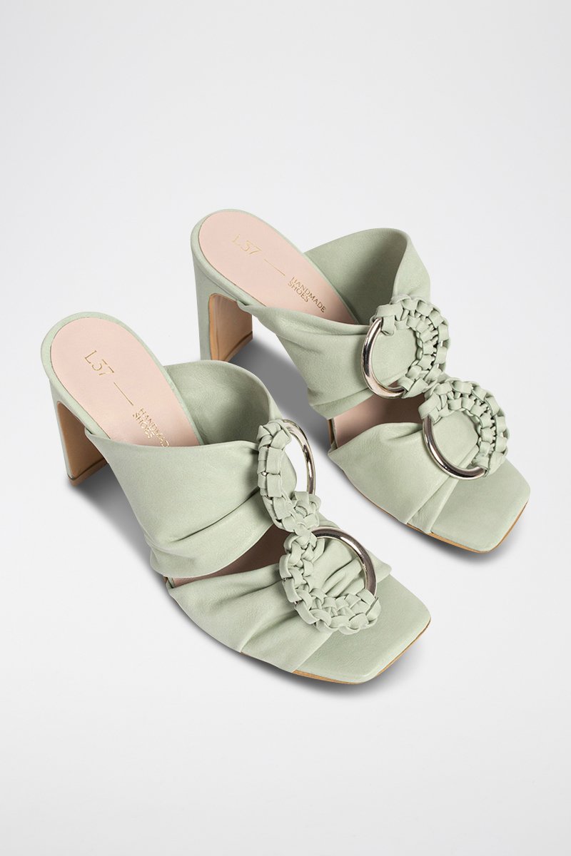 Mules de salto em couro Where the Shadow - Verde-claro