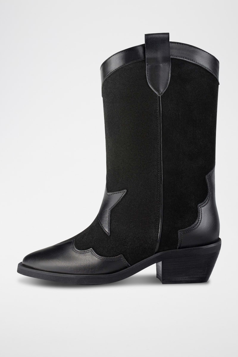 Botas em couro e nobuck.