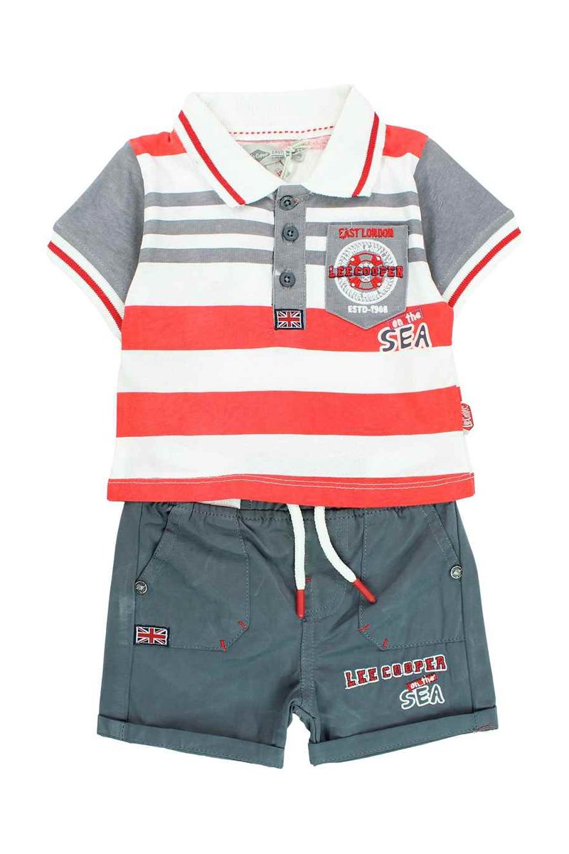 T-shirt e calções - Vermelho e cinzento