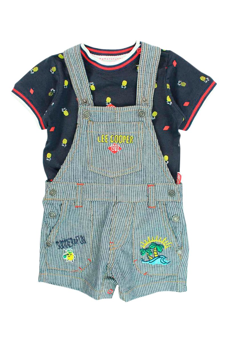 T-shirt e jardineiras - Azul